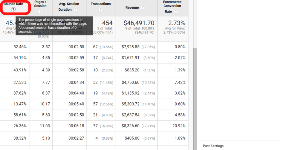 Bounce Rate (hay còn gọi là Tỷ lệ thoát trang đơn) chính là tỷ lệ phần trăm của sessions của các trang đơn chia cho tổng số sessions của website (Bounce Rate = (single-page sessions / total site sessions)*100).
