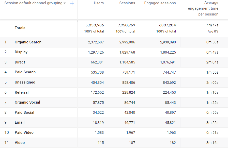 GA4 – Default Channel Groupings hay Nhóm kênh là định nghĩa về các nguồn lưu lượng truy cập vào trang web của bạn dựa trên quy tắc, cho phép bạn theo dõi hiệu suất của tất cả các kênh lưu lượng truy cập vào trang web của mình.
