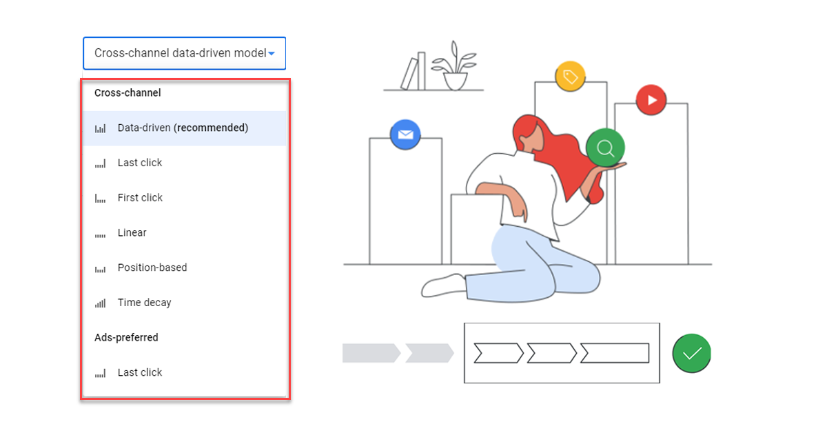 Google Analytics 4 – Attribution modeling: Phân bổ (attribution) là hành động chỉ định tín dụng chuyển đổi cho các quảng cáo khác nhau, lượng click, các yếu tố trong đường dẫn mà người dùng thực hiện để hoàn thành một chuyển đổi.