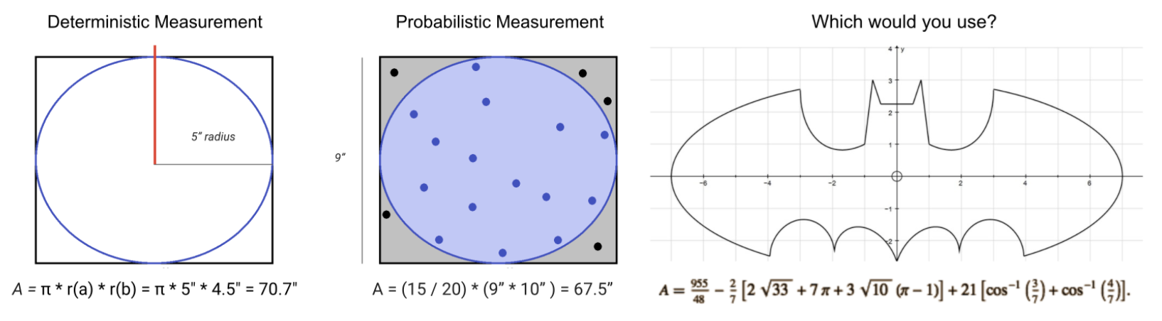 Chúng ta đo lường một cách chính xác (Deterministic Measurement) nếu chúng ta có đủ quyền truy cập vào tất cả các tham số. Phép đo xác suất (Probabilistic Measurement) cho phép chúng ta ước tính các giá trị trong trường hợp không có tham số. Trong ví dụ đơn giản ở trên, chúng ta có thể sẽ sử dụng các phương pháp xác suất nếu chúng ta thiếu tham số “diện tích của người dơi“. Để chuyển điều đó sang không gian đo lường kỹ thuật số, chúng ta cần xem xét rằng các số nhận dạng cookie đang biến mất, vì vậy chúng ta cần các cách mô hình hóa mới để đo lường các chuyển đổi.